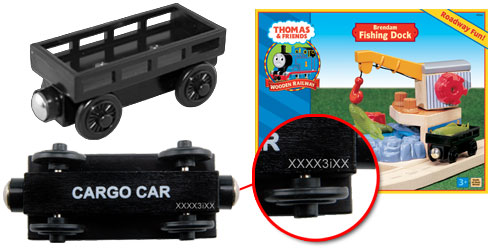 The All Black Cargo Car was found exclusively in the Brendam Fishing Dock destination with item number of LC99362. Cargo cars sold in other sets are not included in this recall.